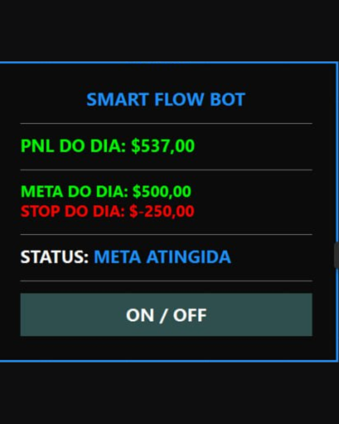 Smart Flow Bot é uma automação de trading desenvolvida para executar operações no mercado financeiro de forma disciplinada, precisa e baseada em regras estratégicas, eliminando os erros emocionais que normalmente prejudicam os traders.